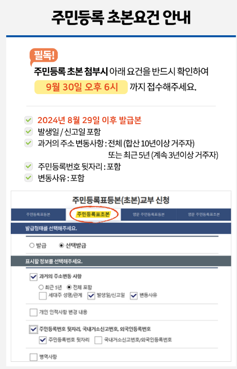 2. 주민등록초본(신청기간 내 발급본_유효기간 확인)_ 마이테이터 서비르를 이용할 경우엔 자동제출됩니다!
