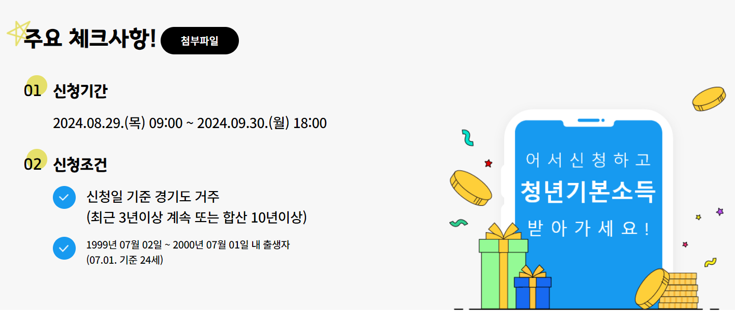 경기도 청년기본소득은 신청일 기준 경기도에 주소지를 두고 있는 24세 청년들이 신청하실 수 있어요!