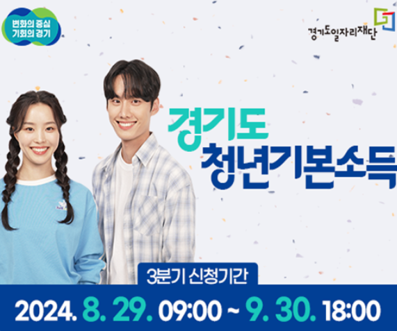 경기도 청년기본소득은 현재 3분기 신청중에 있습니다. 24년 8월 29일부터 9월 30일까지 3분기 신청기간이예요!