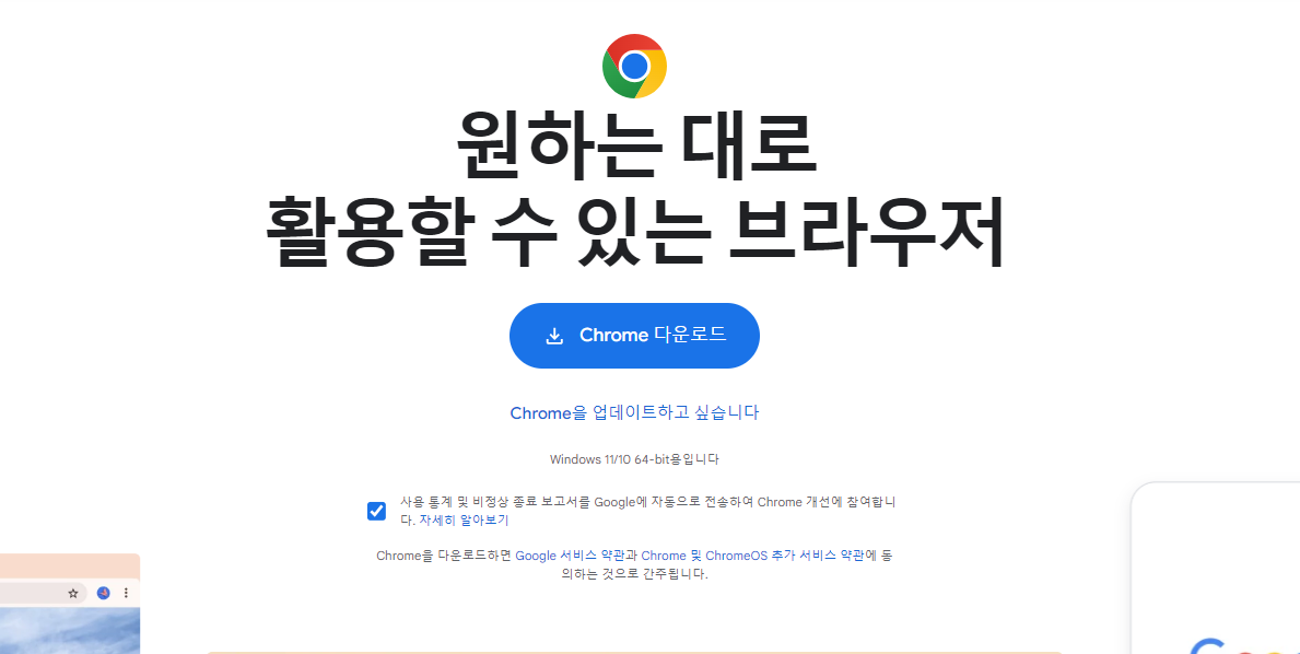 타 사이트의 정신없고 눈을 홀리는 페이지 구성에 피로하셨다면, 구글 크롬 브라우저는 그러한 분들에게 제격입니다.