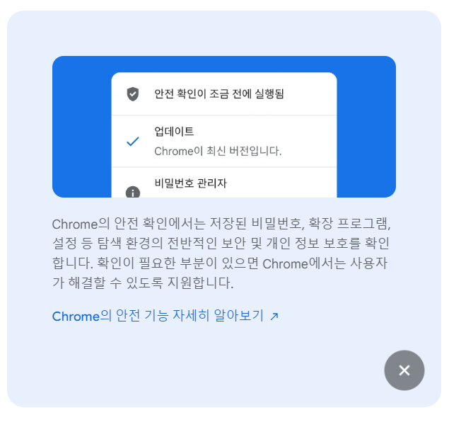 크롬의 세이프 브라우징 기능은 악성 웹사이트나 피싱 사이트로부터 사용자를 보호합니다.
