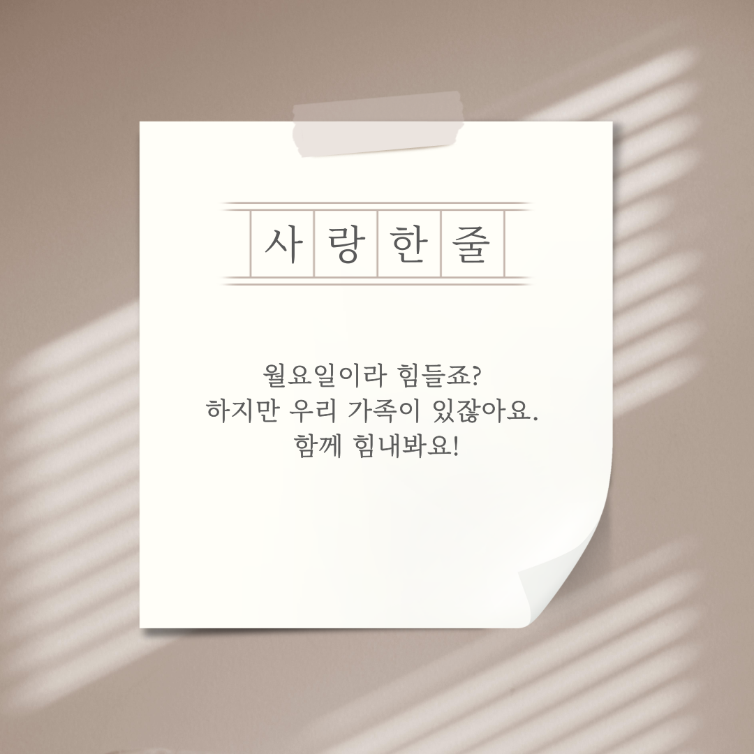 가족간의 월요일 인사말 (1).png 0.48MB 가족간의 월요일 인사말 (2).png 0.49MB 가족간의 월요일 인사말 (3).png 0.49MB 가족간의 월요일 인사말 (4).png 0.50MB 가족간의 월요일 인사말 (5).png 0.49MB 가족간의 월요일 인사말 (6).png 0.50MB 가족간의 월요일 인사말 (7).png 0.49MB