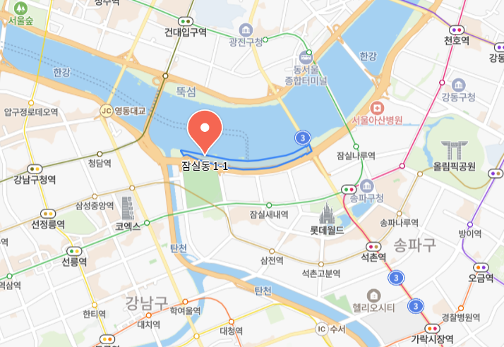 잠실한강공원 제2주차랑 주차 후 도보 6분